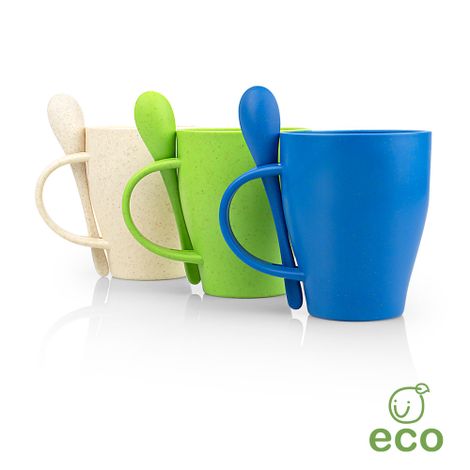 Mug en paja de trigo. Incluye cuchara. Capacidad 350ml / 12 Oz.