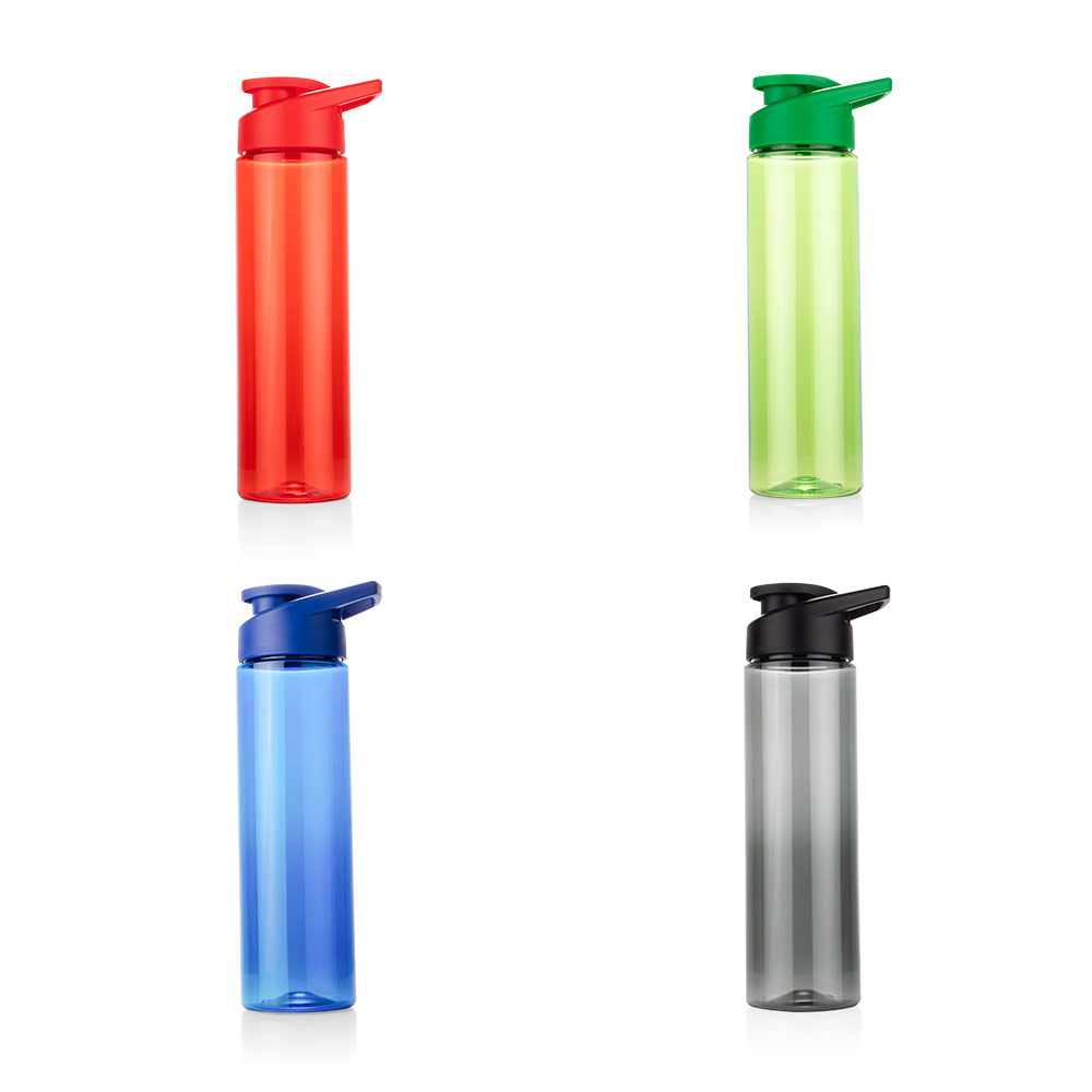 Botella deportiva con tapa a presión y práctica agarradera para un transporte fácil y seguro. Diseño ligero y reutilizable, ideal para acompañarte en cualquier actividad. Capacidad: 700 ml / 24 Oz.
