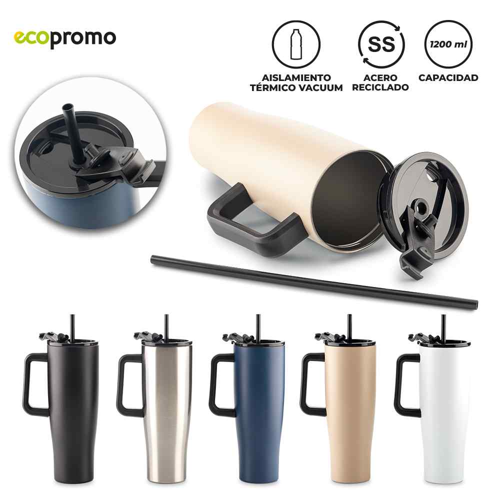 Mug metalico doble pared vacuum en aceroinoxidable reciclado con aislamiento termico quemantiene la bebida fria o caliente hasta 6h aprox(puede variar dependiendo condiciones climaticas) Tapa tipo rosca con pestana y pitillo Incluye pitilloplastico Empaque caja individual Medidas: 26 5 cm x 9 5 cm diametro Marca: 5 cm / Tampografia / Laser (Liquido oxidante)Ficha Tecnica