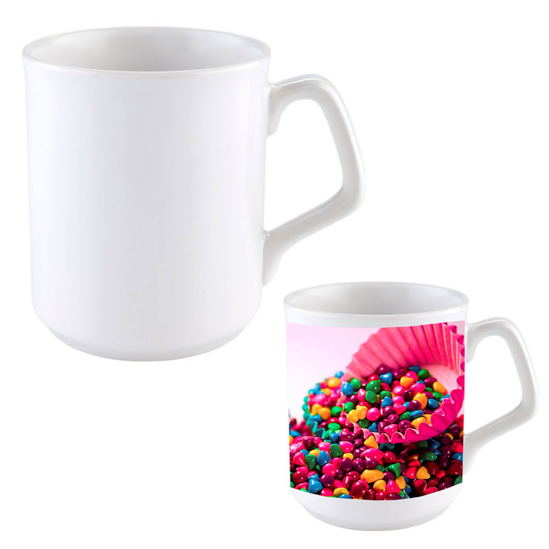 Cerámica Colores: Blanco Medidas: 9 5 cm alto x 8 cm diámetro Técnica de marca: Sublimación Apto para uso en Horno Microondas