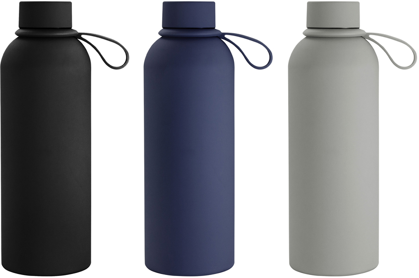 Botella doble pared, sellada al vacío. Botella con aislamiento térmico. Tecnología vacuum. Interior de acero 304 y exterior de acero 201. Tapa a rosca de acero 201, interior plástico con anillo de silicona. Asa de silicona para un transporte fácil. Pintura con terminación suave al tacto. Mantiene hasta 6 hs la temperatura de las bebidas calientes y 12 hs de las bebidas frías.